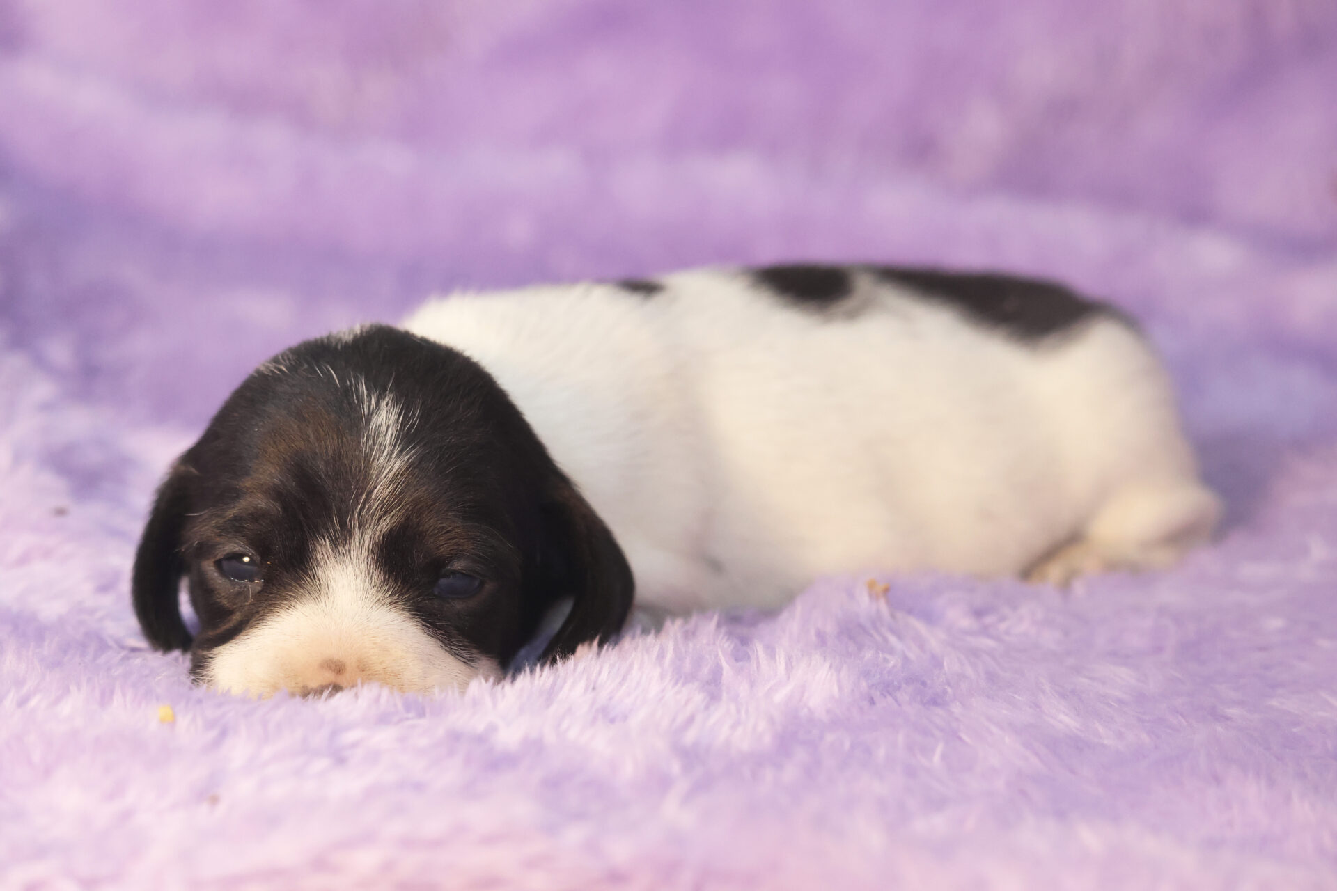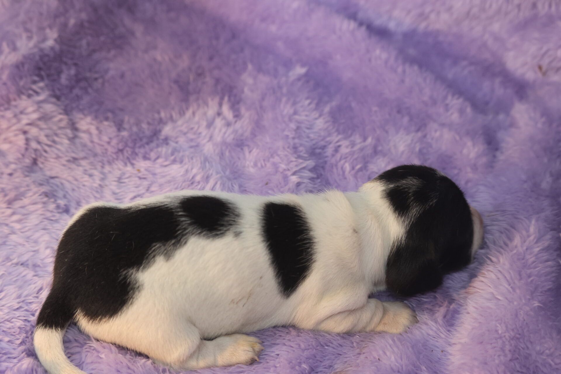 AVAILABLE – Abigail is a short hair black & tan piebald female.